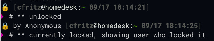 - (optionally) show lock status and name on shell prompt (see below for setup).